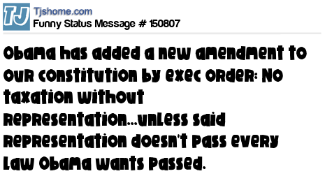 X  Obama has added a new amendment to our constitution by exec order: No taxation without representation...unless said representation doesn't pass every law Obama wants passed.