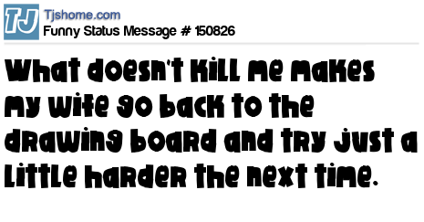 X says What doesn't kill me makes my wife go back to the drawing board and try just a little harder the next time.