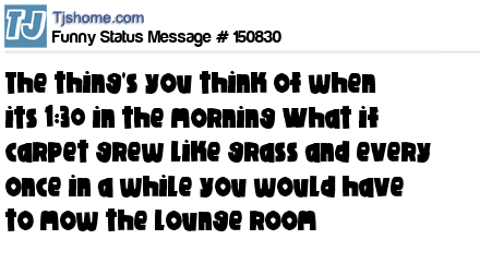 X says The thing's you think of when its 1:30 in the morning What if carpet grew like grass and every once in a while you would have to mow the lounge room