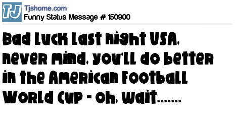X Bad luck last night USA, never mind, you'll do better in the American Football World Cup - oh, wait.......