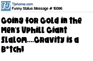 X is going for Gold in the Men's Uphill Giant Slalom....Gravity is a B*tch!
