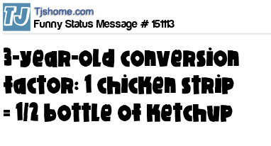 X 3-year-old conversion factor: 1 chicken strip = 1/2 bottle of ketchup