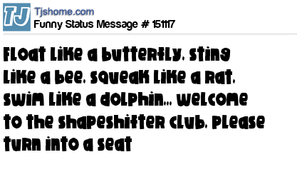 X float like a butterfly, sting like a bee, squeak like a rat, swim like a dolphin,,, welcome to the shapeshifter club, please turn into a seat