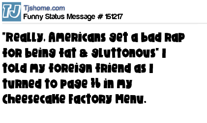 X says "Really, Americans get a bad rap for being fat & gluttonous" I told my foreign friend as I turned to page 76 in my Cheesecake Factory Menu.