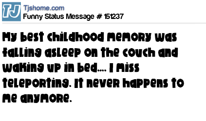 X says My best childhood memory was falling asleep on the couch and waking up in bed…. I miss teleporting. It never happens to me anymore.
