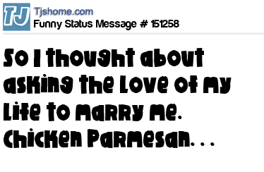 X says So I thought about asking the love of my life to marry me. Chicken Parmesan. . .