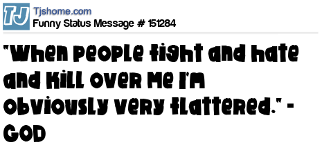 X says "When people fight and hate and kill over Me I'm obviously very flattered." - GOD