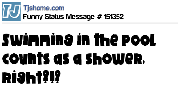 - # 206428 The pool supply sales lady told me I should shock my swimming pool once a week, so I keep showing it my senior picture.