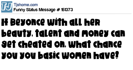 X says If Beyonce with all her beauty, talent and money can get cheated on, what chance you you basic women have?