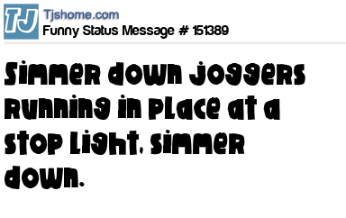 X says Simmer down joggers running in place at a stop light, simmer down.
