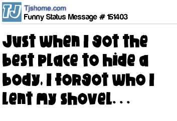 X says Just when I got the best place to hide a body, I forgot who I lent my shovel. . .