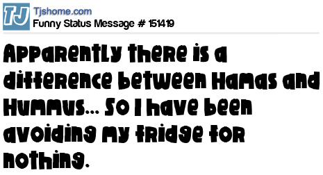 X Apparently there is a difference between Hamas and Hummus... So I have been avoiding my fridge for nothing.