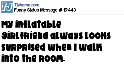 - # 130464 My home is like the Playboy Mansion except all the girls are inflatable and have a surprised look on their face.