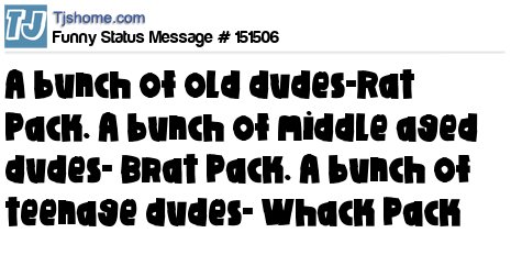X A bunch of old dudes-Rat Pack. A bunch of middle aged dudes- Brat Pack. A bunch of teenage dudes- Whack Pack