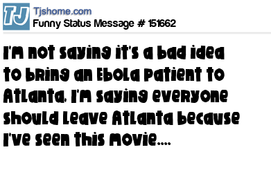 X says I'm not saying it's a bad idea to bring an Ebola patient to Atlanta, I'm saying everyone should leave Atlanta because I've seen this movie....