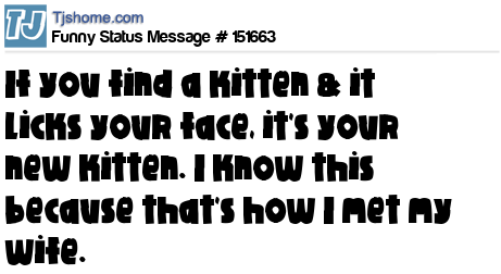 X says If you find a kitten & it licks your face, it's your new kitten. I know this because that's how I met my wife.