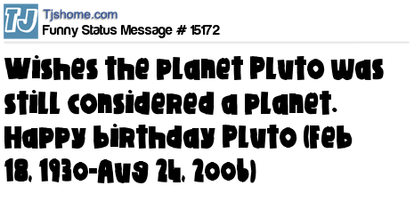 X wishes the planet Pluto was still considered a planet. Happy birthday Pluto (Feb 18, 1930-Aug 24, 2006)
