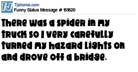 X says There was a spider in my truck so I very carefully turned my hazard lights on and drove off a bridge.