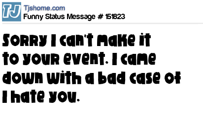 X says Sorry I can't make it to your event. I came down with a bad case of I hate you.