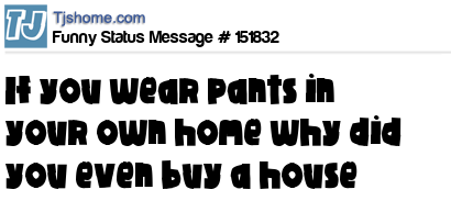 - # 149632 When someone calls you to tell you they’re coming over to your house and you lie you’re not home because you don’t want to wear pants.