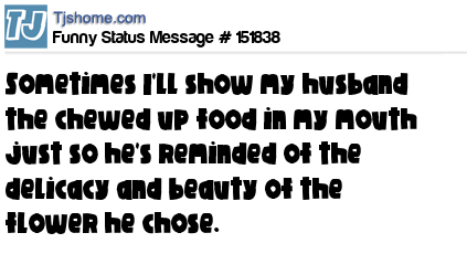 X Sometimes I'll show my husband the chewed up food in my mouth just so he's reminded of the delicacy and beauty of the flower he chose.