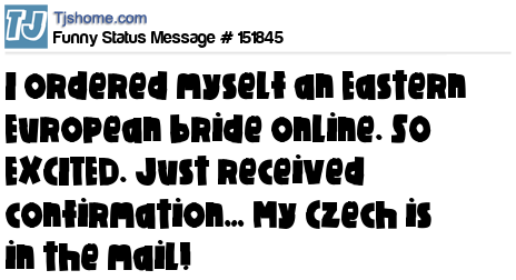 - # 181666 I ordered myself an Eastern European bride online. SO EXCITED. Just received confirmation... My Czech is in the mail