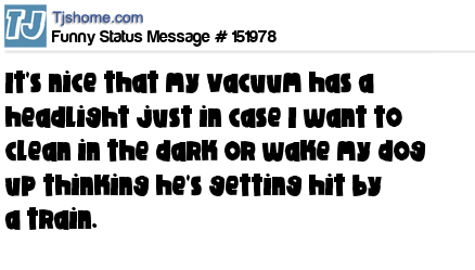 - # 151977 It’s nice that my vacuum has a headlight just in case I want to clean in the dark or wake my dog up thinking he’s getting hit by a train.