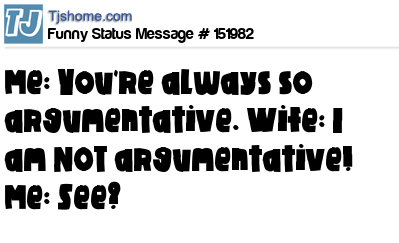 X says Me: You're always so argumentative. Wife: I am NOT argumentative! Me: See?