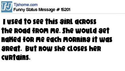 X I used to see this girl across the road from me. She would get naked for me each morning it was great. But now she closes her curtains.