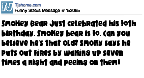 X says Smokey Bear just celebrated his 70th birthday. Smokey bear is 70. Can you believe he's that old? Smoky says he puts out fires by waking up seven times a night and peeing on them!