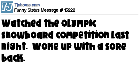 X watched the Olympic snowboard competition last night. Woke up with a sore back.
