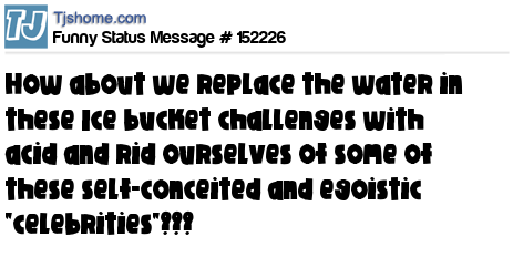 X says How about we replace the water in these Ice bucket challenges with acid and rid ourselves of some of these self-conceited and egoistic "celebrities"???