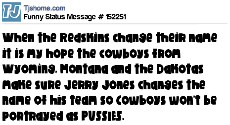 X says When the Redskins change their name it is my hope the cowboys from Wyoming, Montana and the Dakotas make sure Jerry Jones changes the name of his team so Cowboys won't be portrayed as PUSSIES.