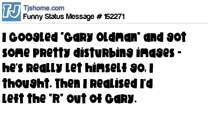 - # 96334 I Googled "Gary Oldman" and got some pretty disturbing images - he's really let himself go, I thought. Then I realised I'd left the "R" out.