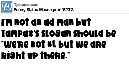 X says I'm not an ad man but Tampax's slogan should be "we're not #1, but we are right up there."