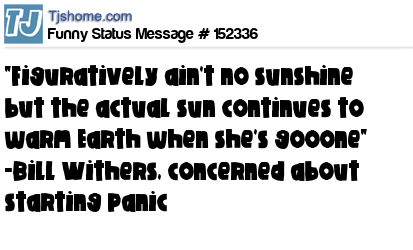 X says "Figuratively ain't no sunshine but the actual sun continues to warm Earth when she's gooone" -Bill Withers, concerned about starting panic