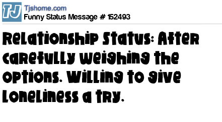 X says Relationship Status: After carefully weighing the options. Willing to give loneliness a try.