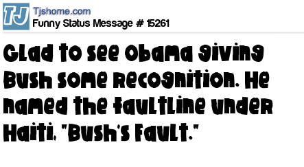 X is glad to see Obama giving Bush some recognition. He named the faultline under Haiti, "Bush's Fault."