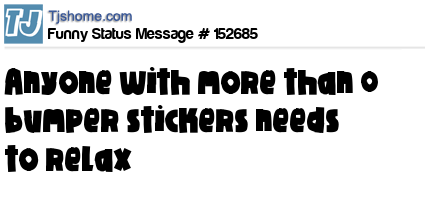 - # 127400 Do some people just wake up one day and think, "I already have 2 bumper stickers, why not 70?"