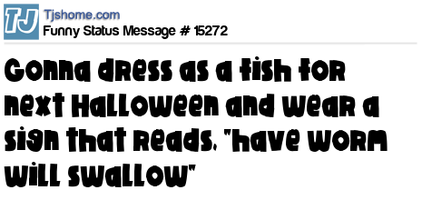 X is gonna dress as a fish for next Halloween and wear a sign that reads, "have worm will swallow"