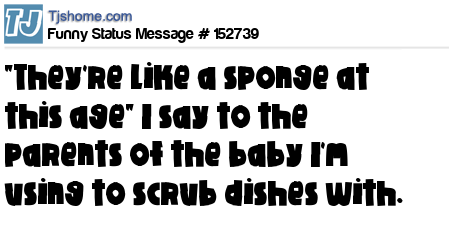X "They're like a sponge at this age" I say to the parents of the baby I'm using to scrub dishes with.