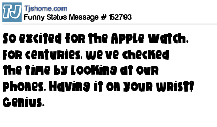 - # 153251 The new iPhone's are out and some are complaining that their phones are bending. Here's an idea. If your phone bends too much, wrap it around your wrist and tell people it's the Apple Watch. You'll be the first one to have it.