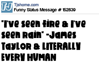 X says "I've seen fire & I've seen rain" -James Taylor & LITERALLY EVERY HUMAN