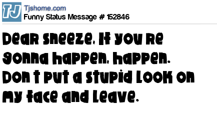 - # 77734 Dear sneeze, If you're gonna happen, happen. Don't put a stupid look on my face and leave.