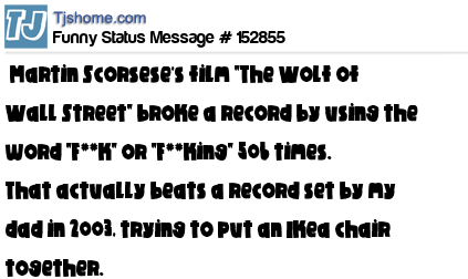X says Martin Scorsese's film "The Wolf of Wall Street" broke a record by using the word "F**k" or "F**king" 506 times. That actually beats a record set by my dad in 2003, trying to put an Ikea chair together.