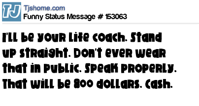 X says I'll be your life coach. Stand up straight. Don't ever wear that in public. Speak properly. That will be 800 dollars. Cash.