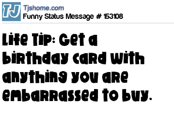 X says Life Tip: Get a birthday card with anything you are embarrassed to buy.