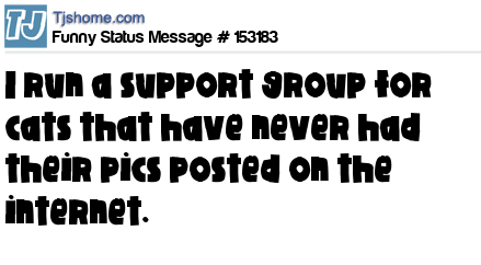 X says I run a support group for cats that have never had their pics posted on the internet.