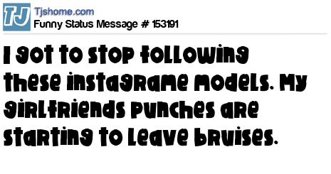X says I got to stop following these instagrame models. My girlfriends punches are starting to leave bruises.