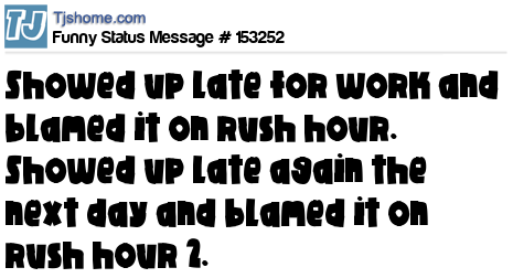 X Showed up late for work and blamed it on rush hour. Showed up late again the next day and blamed it on rush hour 2.
